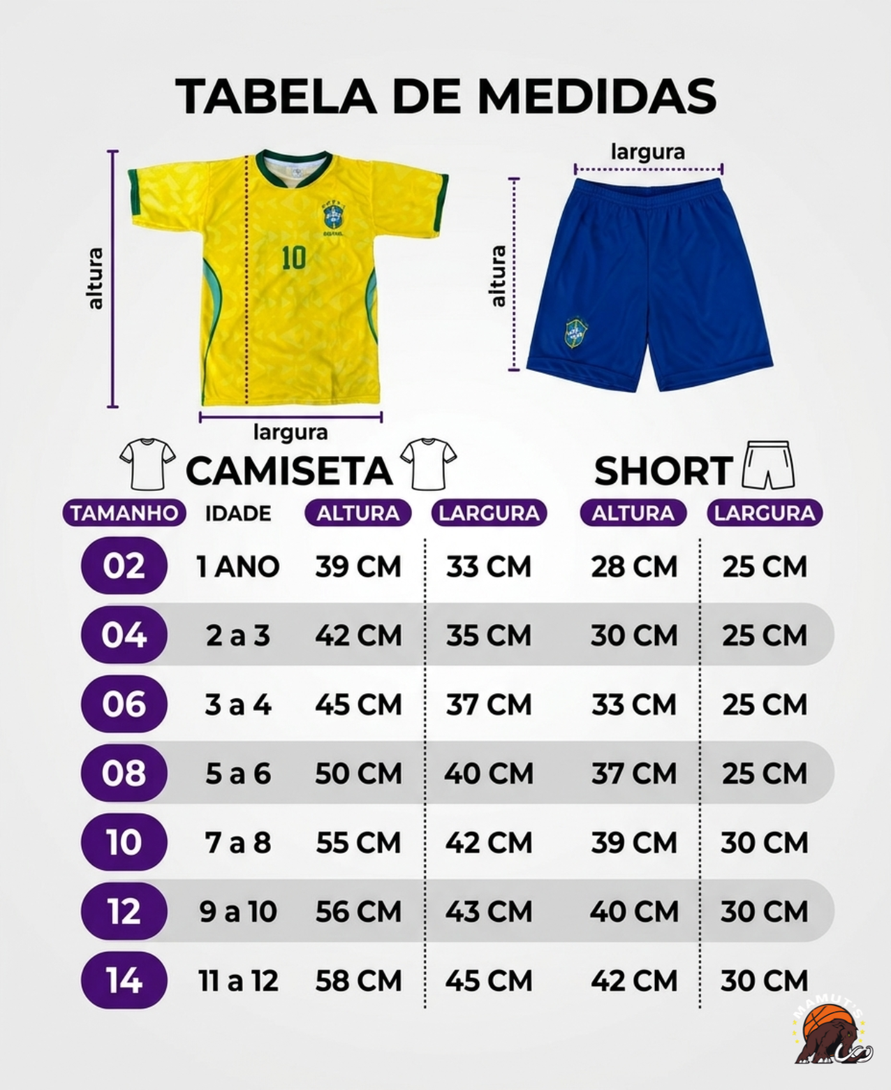 Do 02 ao 14 – consulte nossa tabela de medidas para escolher o ideal 👇